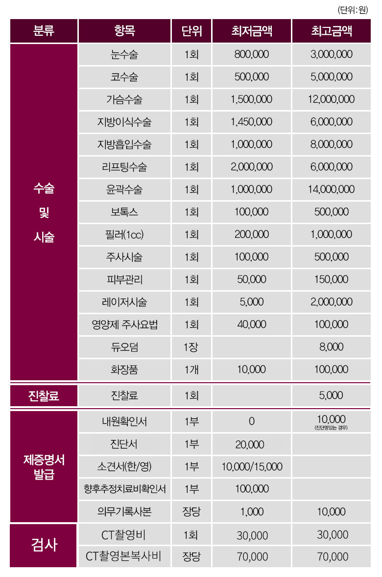 그레이스성형외과 비급여 진료비용 안내 페이지 정보 작성자 관리자 댓글 0건 조회 14회 작성일 26-02-10 09:40 목록 답변 글쓰기 게시판 리스트 옵션 수정 삭제 본문 위의 금액이 부가세 10%가 별도로 부과, 금액은 1회의 기준이며 재수술 및 추가 수술에 따라 비용이 달라질 수 있습니다. 댓글 0 댓글목록 등록된 댓글이 없습니다.