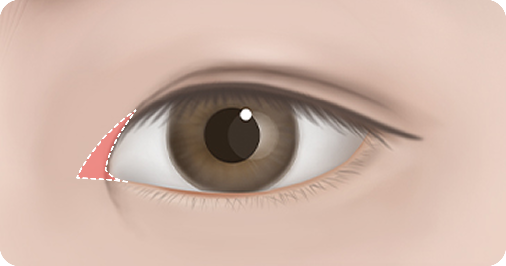 눈꼬리는 눈꼬리인대(Lateral Canthal Ligament)에 단단히 고정되어 있습니다.