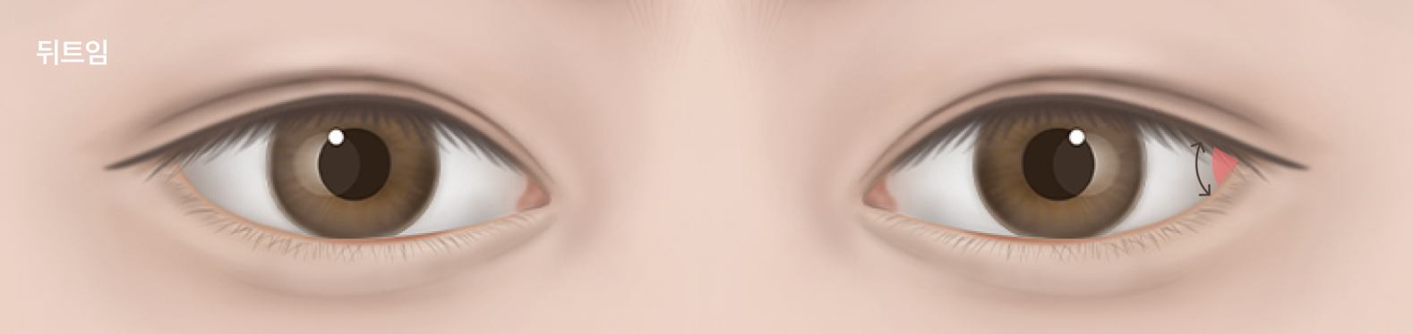 트임 부위가 다시 붙지 않고, 자연스럽게 눈꼬리 라인을 유지합니다.