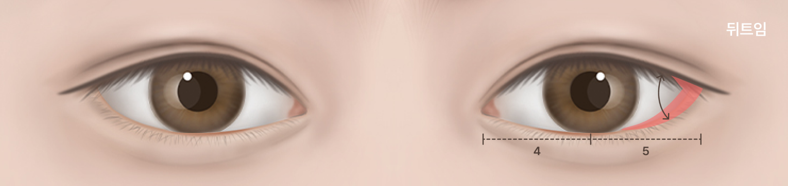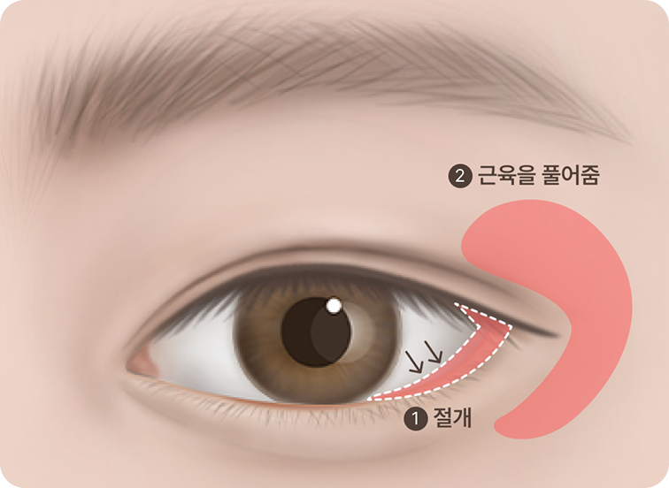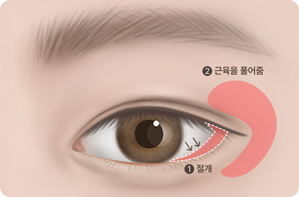 그래서 눈꼬리 내리기 수술은 기존 인대를 절개하고