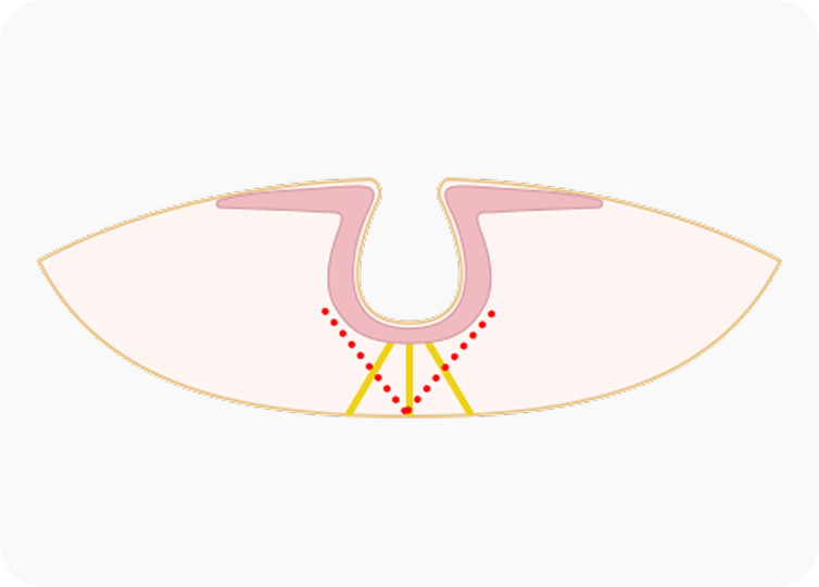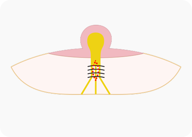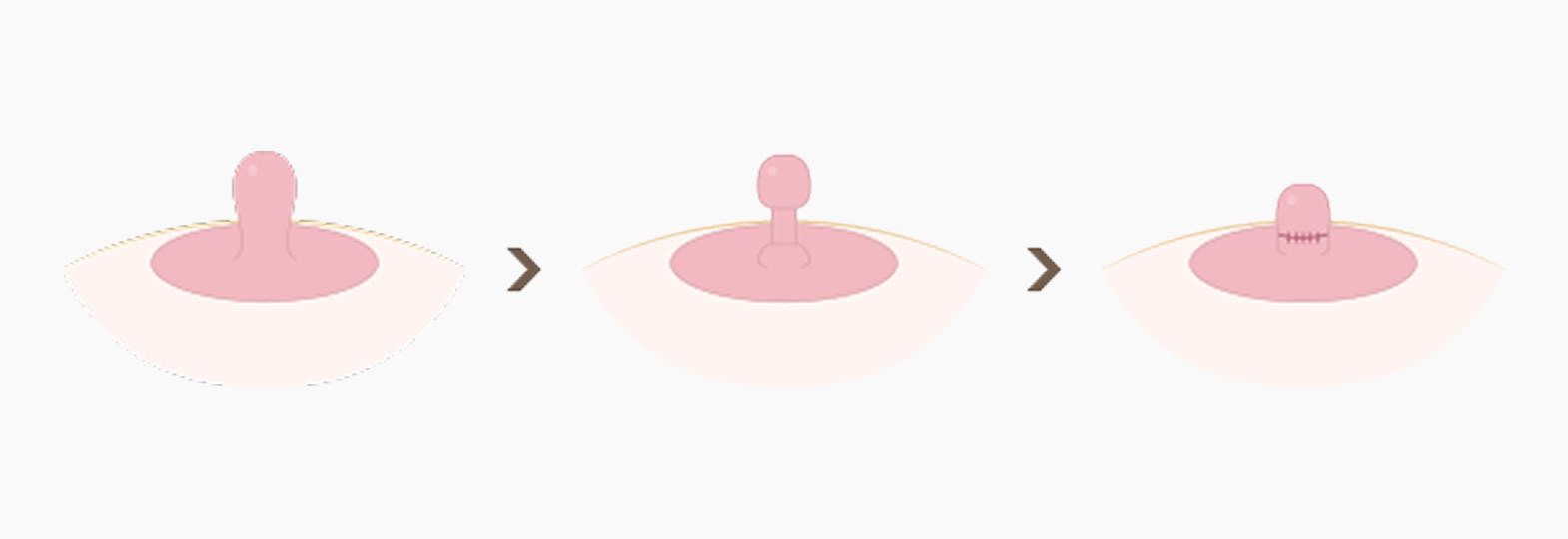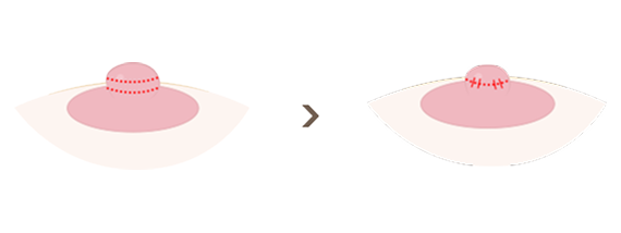 유두를 유륜에 봉합하여 높이를 높여줍니다.