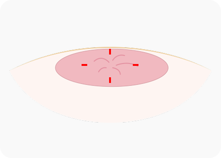 사방으로 약 2mm 절개