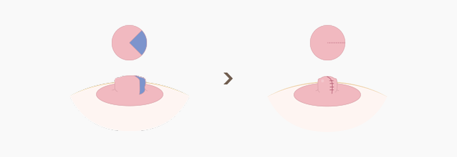 피자 조각을 떼어내듯이 유두의 일부를 제거하여