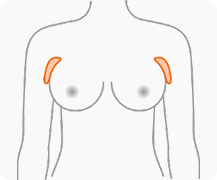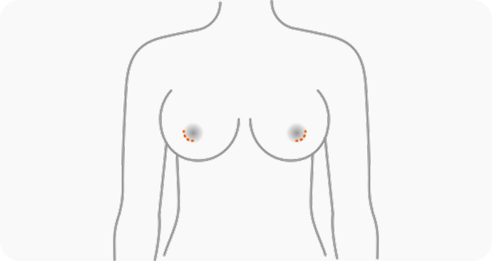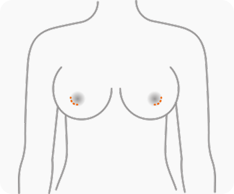 절개는 겨드랑이, 유방밑선, 유륜 중 선택하며 주로 겨드랑이와 유방밑선이 사용됩니다.