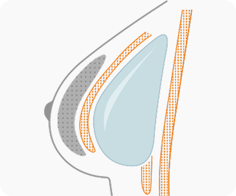 보형물은 대흉근 위나 아래에 위치하며, 아래 기준을 참고해 결정합니다.