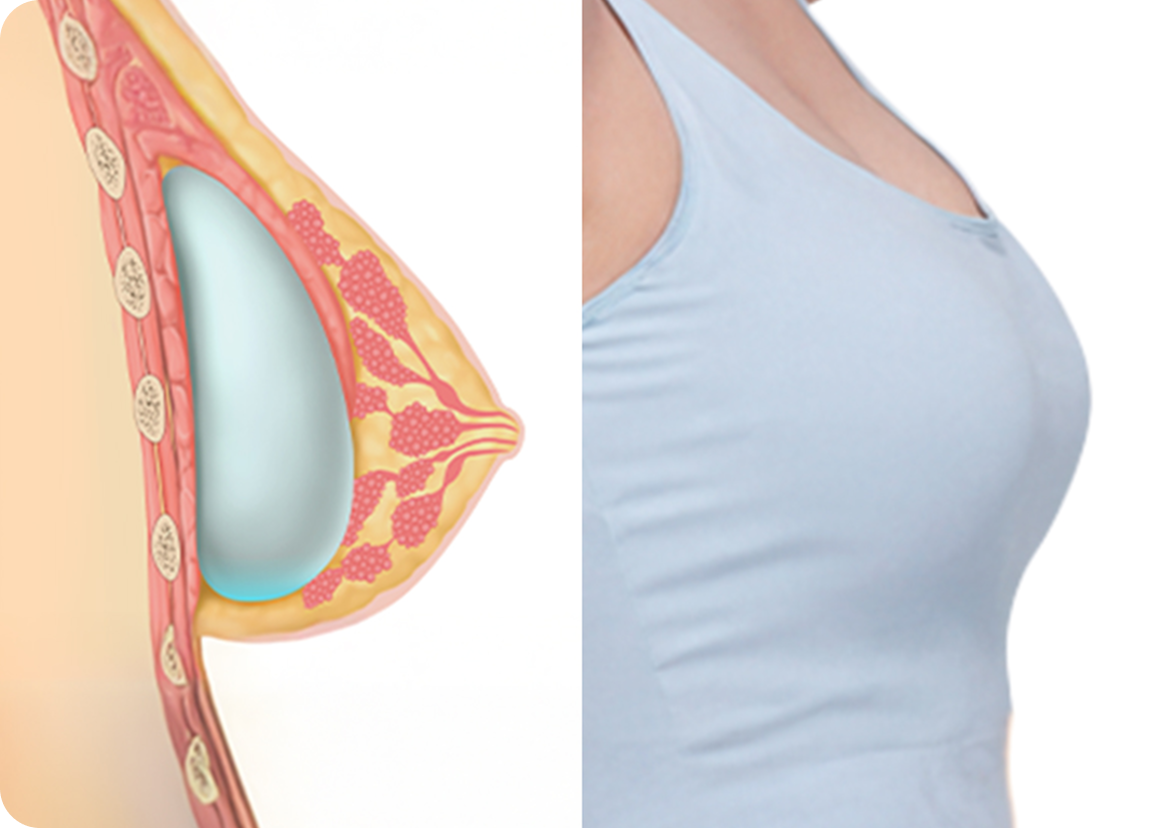 아름다운 옆모습을 위해서는 유방조직의 정교한 컨트롤(breast tissue control)이 필요합니다. 그레이스의 수직재배치(Vertical Redraping) 기법은 윗볼록을 줄이고 자연스러운 물방울 형태를 만드는 최문섭 원장의 노하우로, 적절한 이중평면 적용을 통해 이상적인 옆모습과 수술 후 통증 감소 효과까지 기대할 수 있습니다.