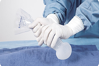 1회용 펀넬(funnel)을 사용하여 보형물이